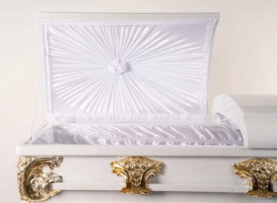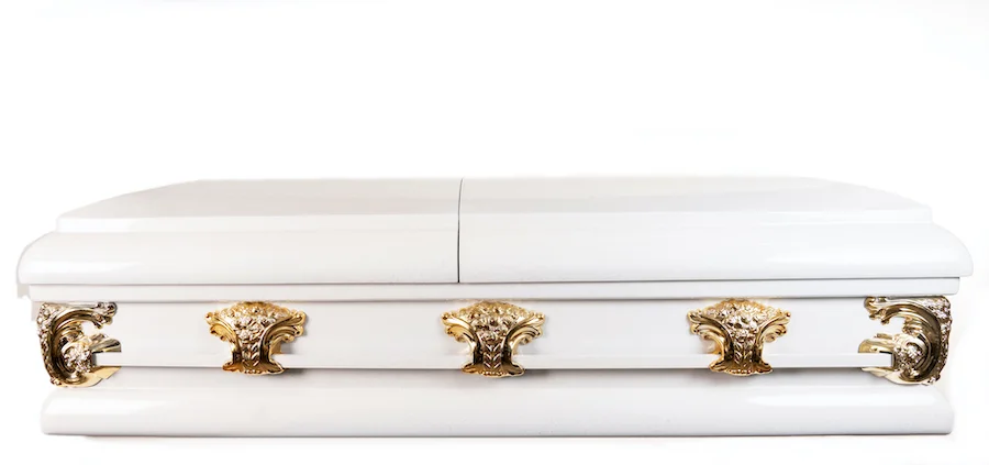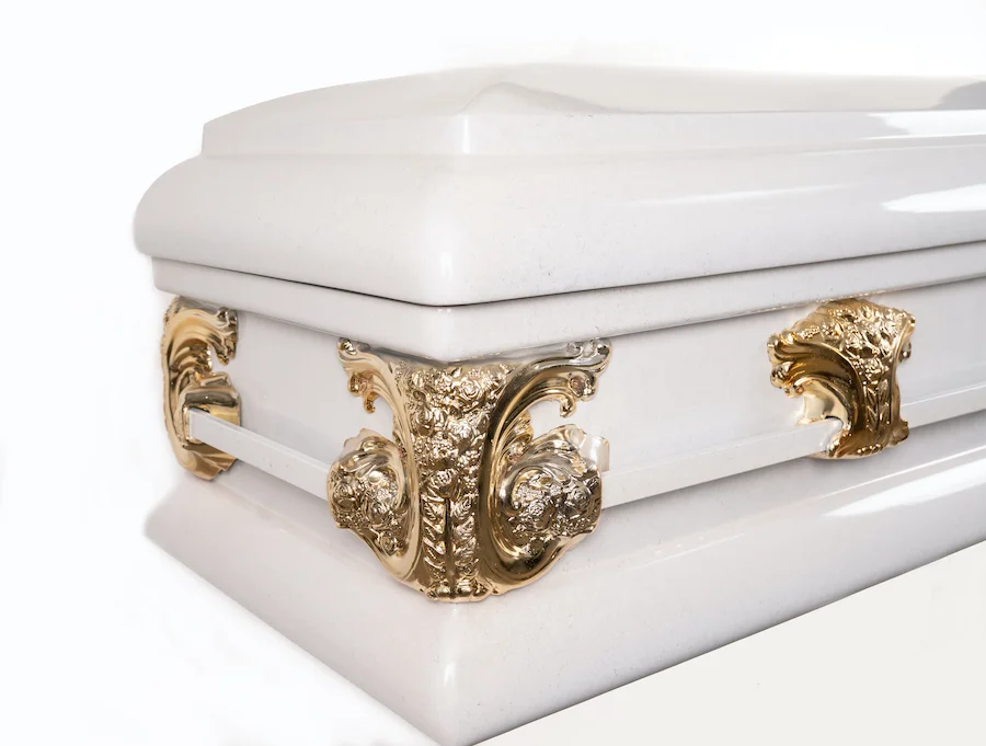 Cofre de bordes redondeados con adornos metálicos que aportan clase y distinción.