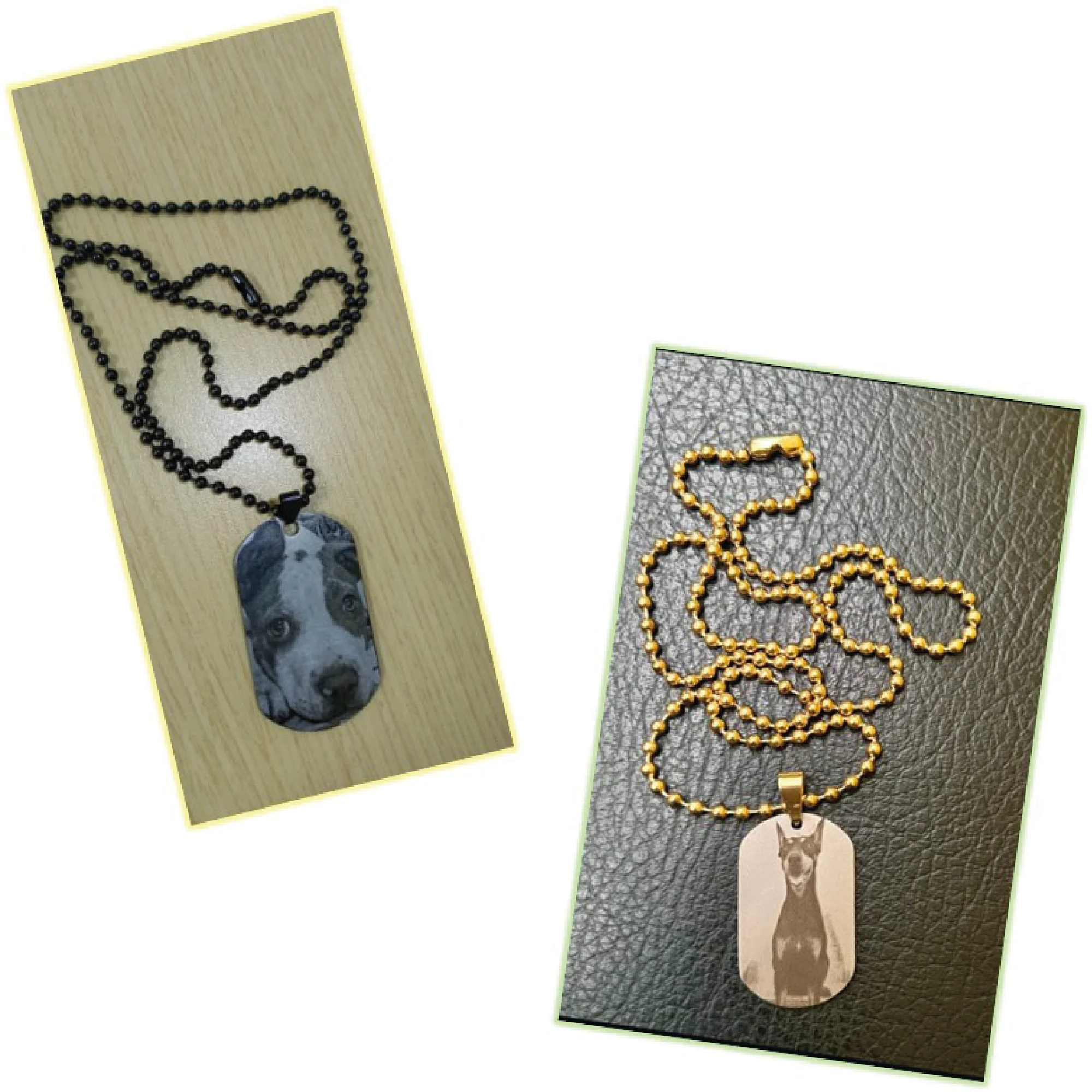 Collar de acero inoxidable, aproximadamente 30 cm, dije incluido, marcado en la parte trasera con fecha o frase.