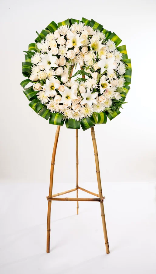 Las coronas tienen un significado especial, ya que simbolizan el cierre del ciclo de la vida del ser querido, elaborada con componentes biodegradables y flores de temporada como rosas blancas y azucenas que brindan un ambiente de serenidad y tranquilidad.